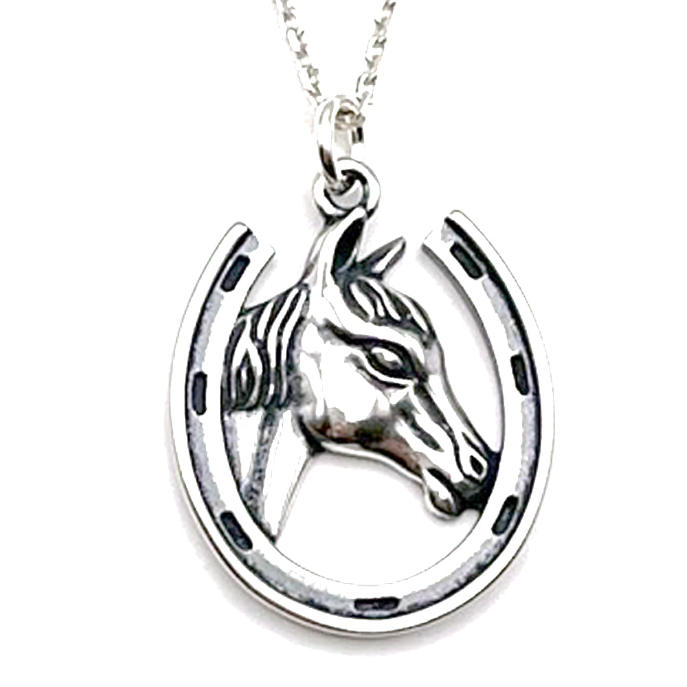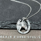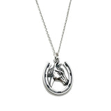 Sterling Silver Horse in Horseshoe Charm Necklace