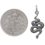 Let this sterling silver small snake charm slither its way into your jewelry designs. Tiny enough to be used in multiples along the length of a necklace, and light enough to be focal points on serpent earrings, this snake charm will add instant Gothic appeal to your jewelry line.