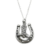 Sterling Silver Horseshoe with Cowboy Boot Charm Necklace