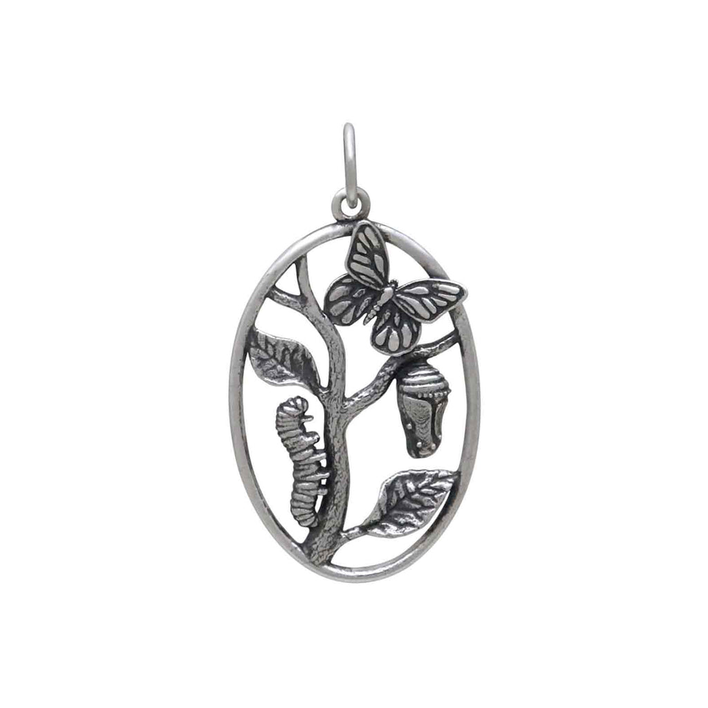Framed within this sterling silver butterfly metamorphosis pendant is the story of one humble little critter. It is a story of acceptance that comes from knowing that if you trust the process and experience the spectacular changes in life with grace, you will become exactly who you are meant to be. You don't have to struggle to be you.