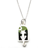 This is a cat pendant crafted from sterling silver and filled with resin, giving it a unique, one-of-a-kind look. Each cat pendant is individually hand-cast. The resin is infused with organic earth pigments, offering BRIGHT, VIVID colors and a stunning contrast between the silver and the colored resin.