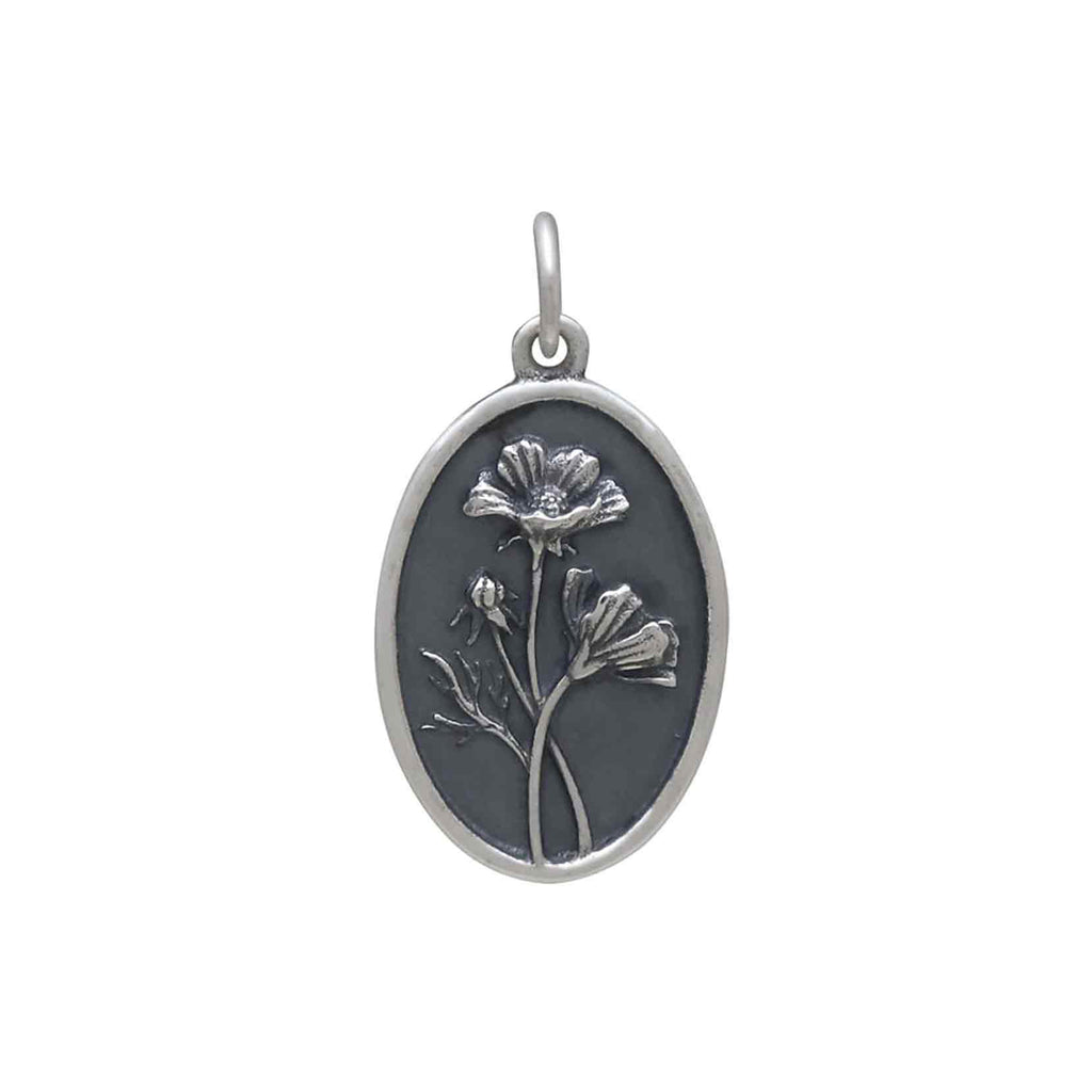 Celebrate October babies with sterling silver cosmos charms - October's Birthflower. Native to Mexico, cosmos are most recognized by their orderly arrangement of petals atop a long stem reaching up to the sky. Spanish settlers to Mexico emamored with the blossom names them kosmos - meaning order and harmony in the universe. Even today cosmos symbolize balance and harmony. Those born in October tend to be philosophers & thinkers who promote fairness and easily see issues from all sides.