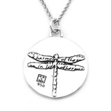 This round, reversible pendant features a dragonfly and reads: gracefulness has been defined to be the outward expression of the inward harmony of the soul. grace must find expression in life. grace glides on blistered feet. grace is the refinement of your soul through time.