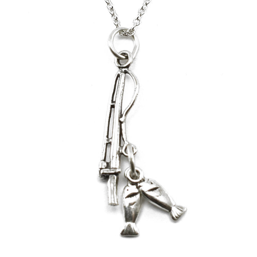 Sterling Silver Fishing Pole with Fish Charm Necklace