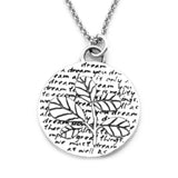 This round, reversible pendant features a foliage and reads: a dream you dream alone is only a dream. a dream you dream together is reality. to accomplish great things, we must dream as well as act.