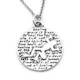 This round, reversible pendant features a frog and reads: grace is given to heal the spiritually sick, not to decorate spiritual heroes. Time heals all wounds. All healing is first a healing of the heart.