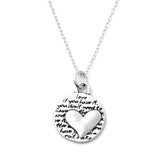 This round, reversible pendant features a heart and reads: If you have it, you don't need to have anything else, and if you don't have it, it doesn't matter what else you have.