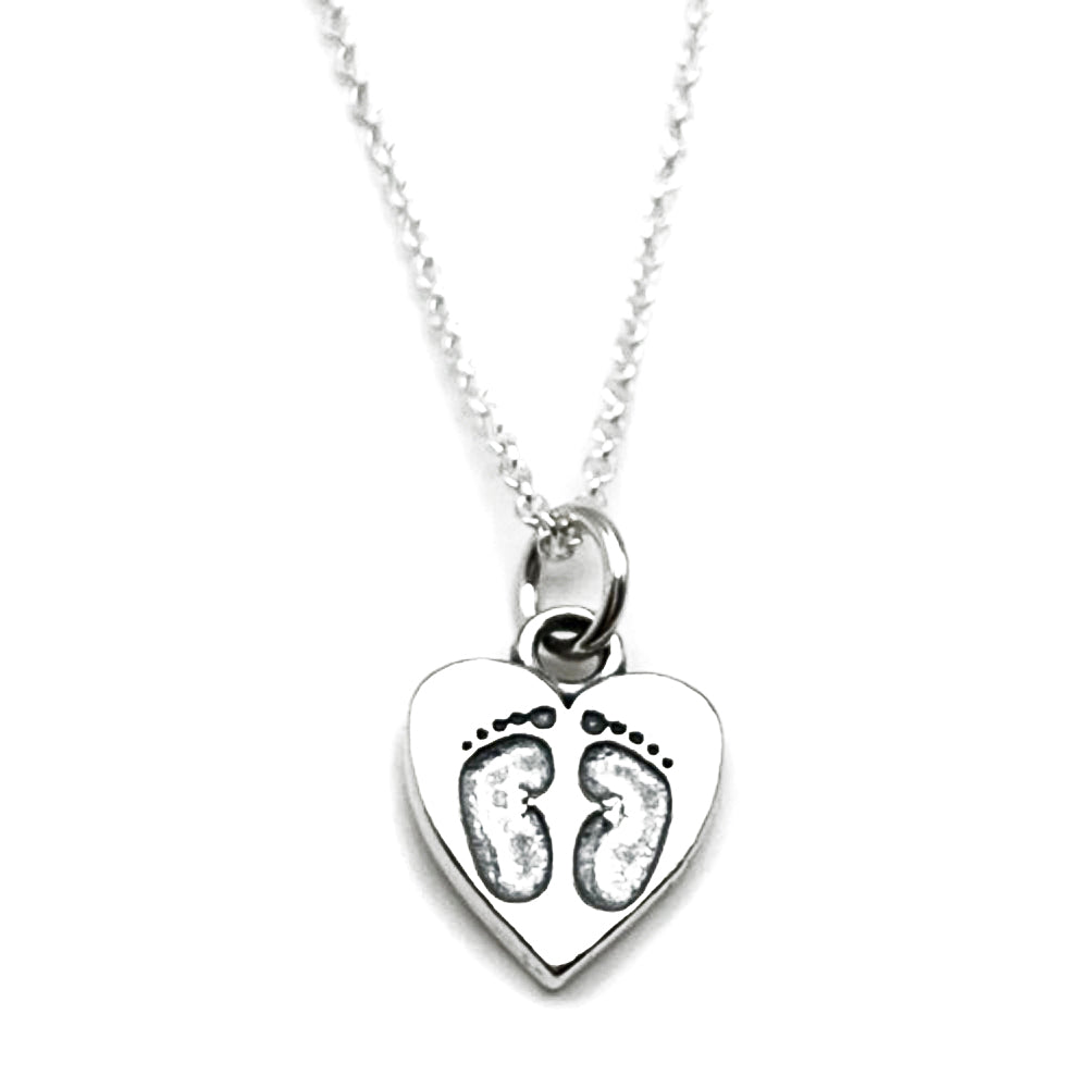 Sterling Silver Heart w/ Baby Feet Charm Necklace
