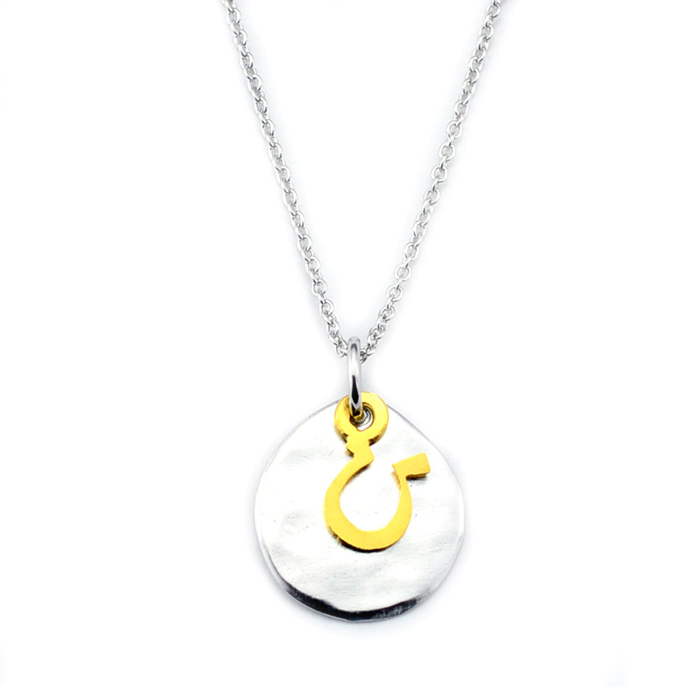 The 18k gold dipped sterling silver cut out of Horseshoe standing firmly together is perfectly paired with hammered sterling silver round pendant Necklace