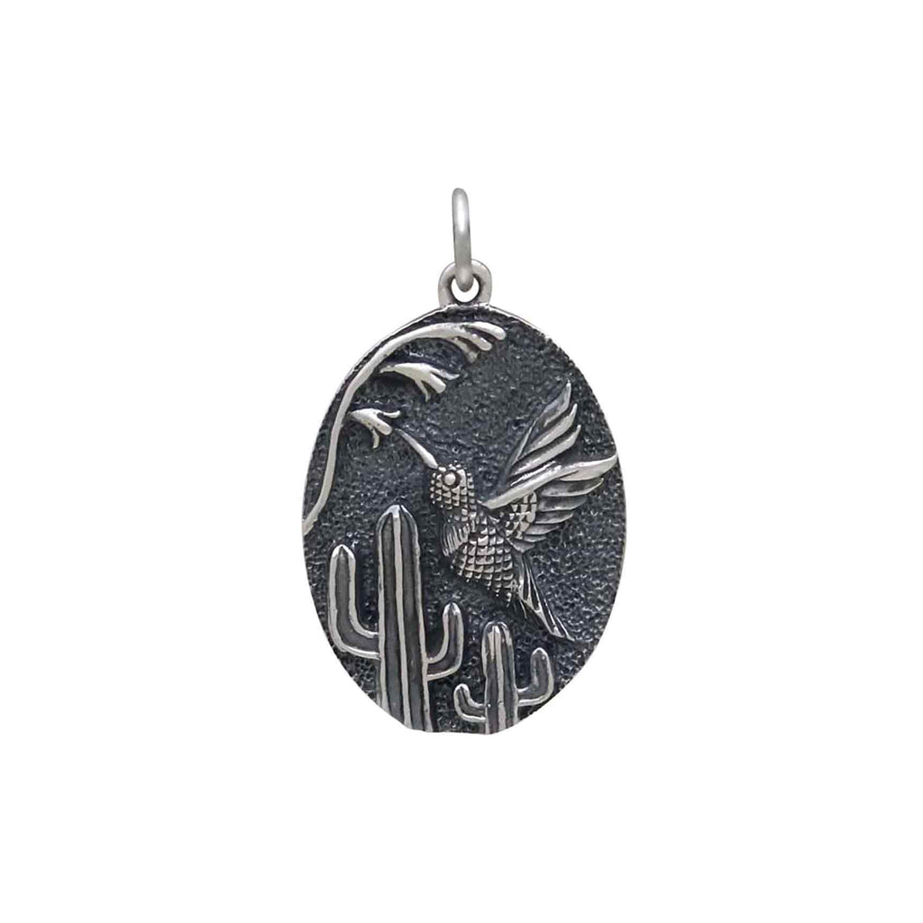 This sterling silver hummingbird and cactus pendant captures a moment in time, reminding us to savor the sweet life and soak up the sunshine. Found all over the Southwest, hummingbirds are tiny powerhouses of energy. Next time you see one ask yourself - what am I doing with my precious energy? Am I frittering it away? Expending too much on pointless endeavors? Or, perhaps it's time conserve energy for something big in your future. Hummingbirds open our eyes to the beauty of a life well spent.