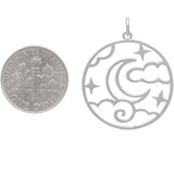 There's much to love about this sterling silver openwork night sky pendant. The night sky is dotted with stars casting their glow upon crescent moons framed by puffy clouds.