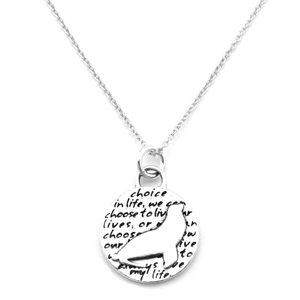 This round, reversible pendant features a sea lion and reads: in life, we can choose to live our lives, or we can choose to allow our lives to live us. i choose to always live my life.