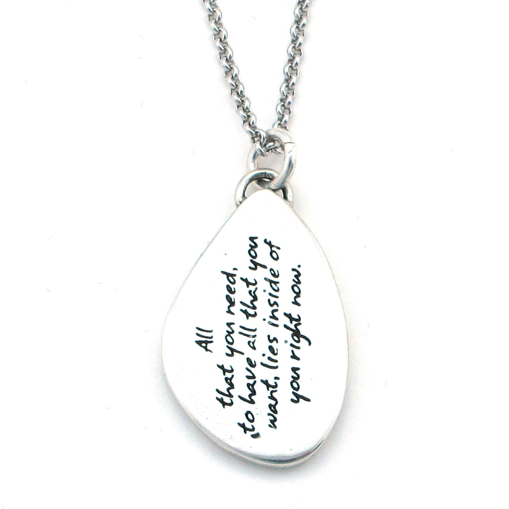 This reversible pendant features a strength braille and reads: All that you need, to have all that you want, lies inside of you right now.