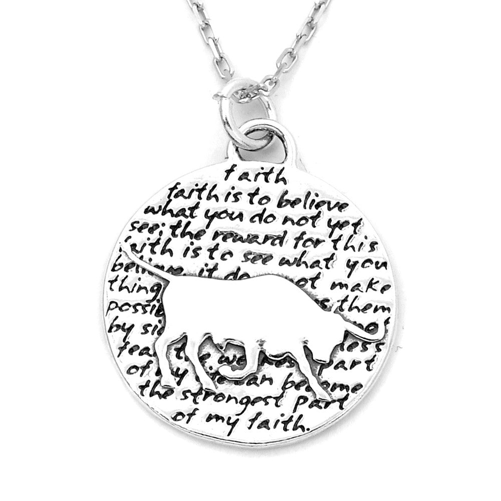 This round, reversible pendant features a taurus and reads: faith is to believe what you do not yet see; the reward for this faith is to see what you believe. it does not make things easy it makes them possible. walk by faith, not by sight. more faith, less fear. the weakest part of my life can become the strongest part of my faith.
