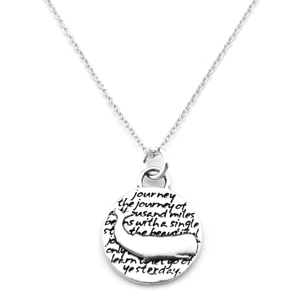 This round, reversible pendant features a whale and reads: the journey of a thousand miles begins with a single step. The beautiful journey of today, can only begin when we learn to let go of yesterday.