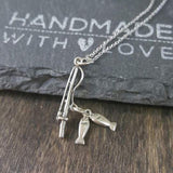 Sterling Silver Fishing Pole with Fish Charm Necklace