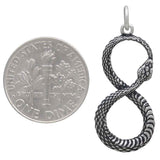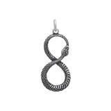 This sterling silver infinity ouroboros snake charm honors a long tradition of serpents in jewelry designs. Snake imagery is found in jewelry dating from ancient times through today. Totally unconnected civilizations, separated by the vast barriers of time and space, have discovered the intrinsic beauty of this form.