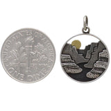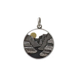 Get lost in the details on this sterling silver layer canyon charm with the bronze sun. Desert landscapes are some of the most unique on our planet, from their vegetation, wildlife, canyons, and amazing colors. Spark your customers' cherished memories tied to these lands. Our fondness and love for a place, where we grew up or went camping every summer, evokes strong feelings of belonging and home.