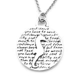 This round, reversible pendant features a seahorse and reads: you have to have confidence in your ability, and then be tough enough to follow through. confidence comes not from always being right but from not fearing to be wrong.