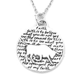 This round, reversible pendant features a taurus and reads: faith is to believe what you do not yet see; the reward for this faith is to see what you believe. it does not make things easy it makes them possible. walk by faith, not by sight. more faith, less fear. the weakest part of my life can become the strongest part of my faith.