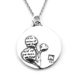 This round, reversible pendant features a tree and reads: the future comes one day at a time. they who lose today may win tomorrow. if you are afraid for your future, you don't have a present. I am not afraid of tomorrow, for I have seen yesterday and I love today. I fear there will be no future for those who do not change.