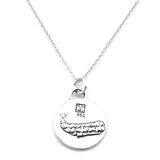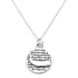 This round, reversible pendant features a whale and reads: the journey of a thousand miles begins with a single step. The beautiful journey of today, can only begin when we learn to let go of yesterday.